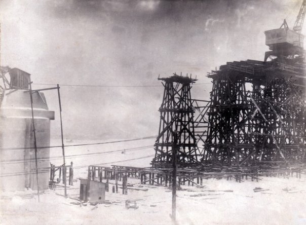 1929 год. Закладка первых кессонов будущего сооружения